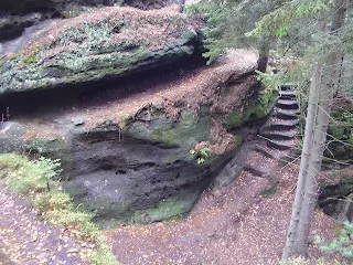 Ruina zamku skalnego Brtnicky Hradek znajduje się głęboko w lesie, na terenie Parku Narodowego Czeska Szwajcaria, w tzw. Šluknowskim Vyběžku (Cyplu Szluknowskim), niedaleko granicy czesko-niemieckiej, w północnych Czechach. Od niewielkiej wioski Brtniky, koło czeskiego miasteczka Rumburk, wiedzie zielony szlak, zwany Górną Drogą, prowadzący do ruin naskalnego zameczku średniowiecznego. Z ruin tych nie zostało wiele, ale miejsce jest przeurocze. Ja miałam okazję być tam jesienią, więc było trochę deszczowo.