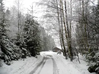 który zaprowadził mnie przez przepiękny, zimowy las do restauracji „Srub u