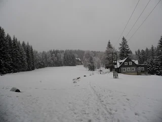 Harrachova, minęłam wielu pieszych turystów i narciarzy biegowych. W drodze